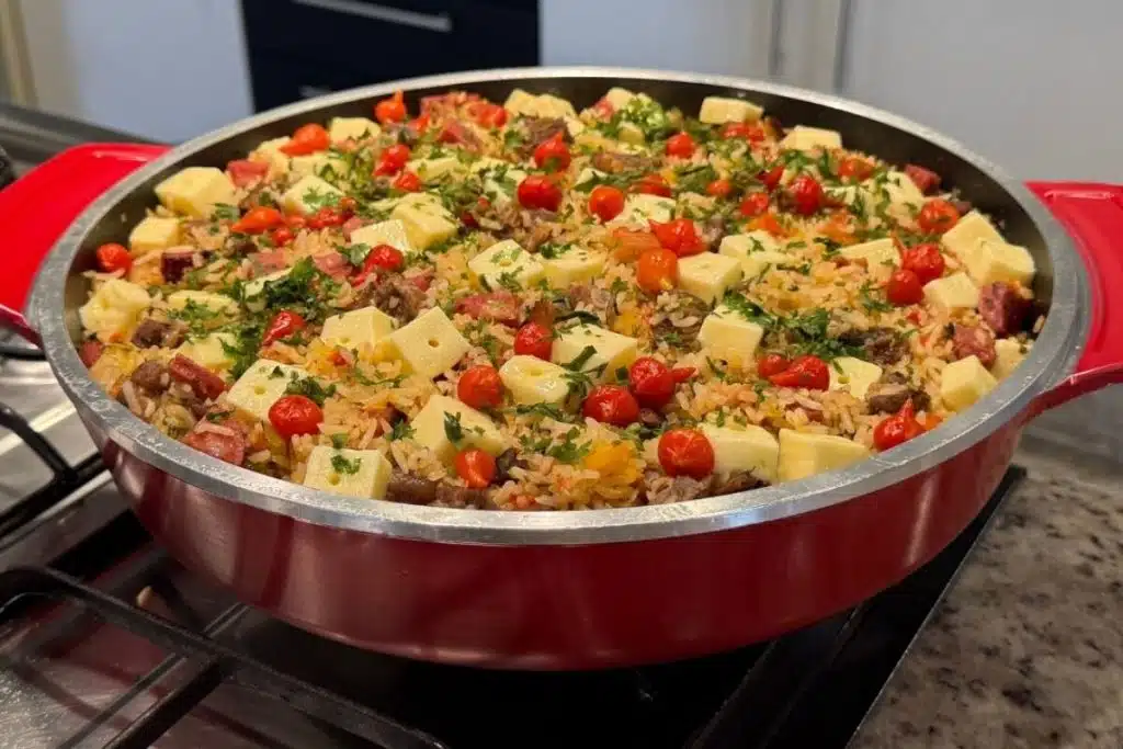 - Adicione a mistura obtida no liquidificador e mexa bem para incorporar os ingredientes.