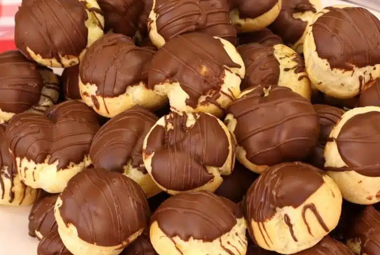 Para fazer as carolinas, comece preparando o creme russo misturando os ingredientes no fogo até engrossar. Enquanto esfria, prepare a massa choux, cozinhando água com manteiga, incorporando a farinha e depois os ovos na batedeira até obter uma massa cremosa. Modele as carolinas em uma assadeira untada e asse até dourar. Após esfriar, recheie com o creme pela base e banhe em chocolate derretido, finalizando com decoração em chocolate.
