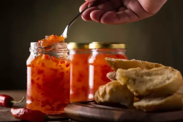 Ingredientes:1 xícara (chá) de açúcar4 pimentas dedo-de-moça picadas sem sementes1 xícara (chá) de suco de laranja1/2 xícara (chá) de água1 maçã ralada Modo de preparo:Em uma panela, misture o açúcar, as…