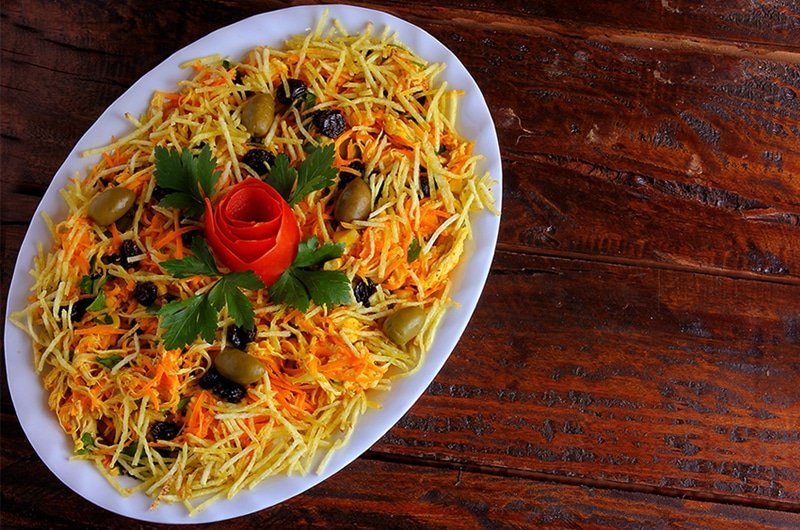 Transfira para uma travessa, e cubra com batata palha a gosto.